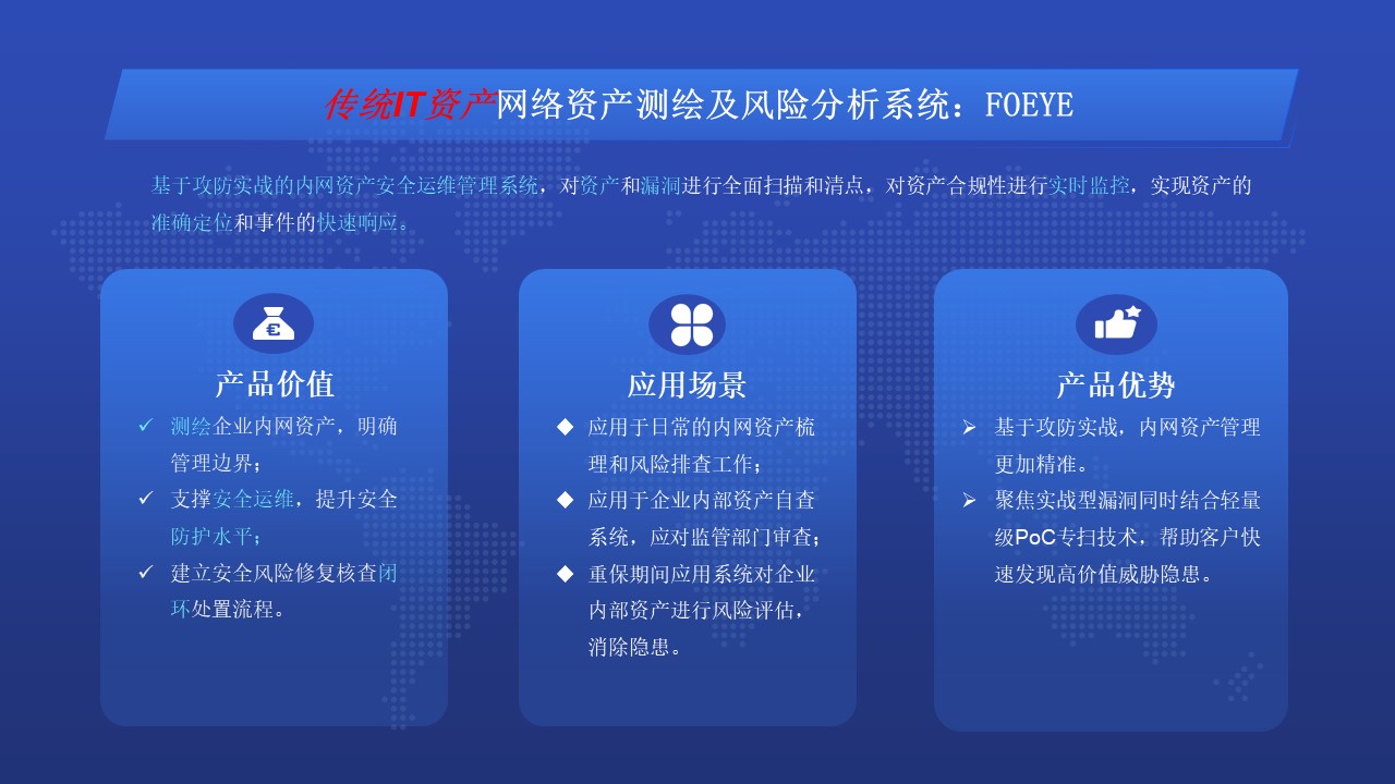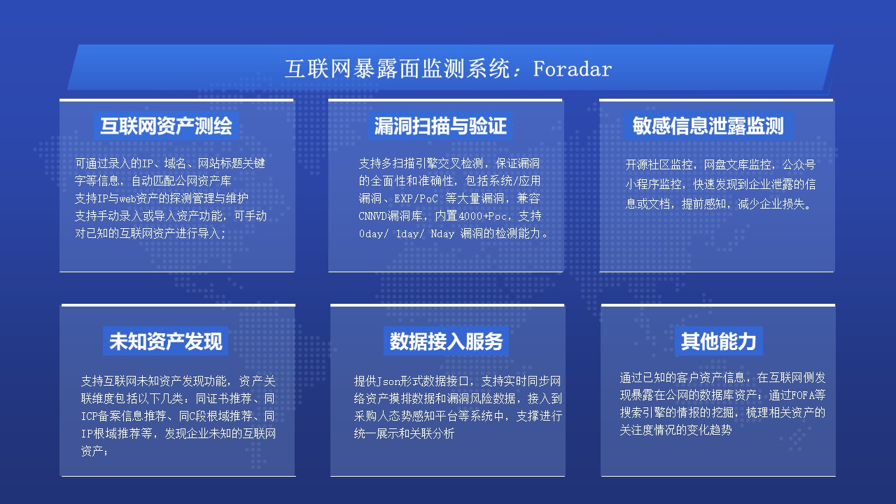 北京华顺信安科技有限公司是一家以网络空间测绘技术为基础,聚焦于安全大数据和网络空间资产安全的高科技企业。中天云图是华顺信安高级战略合作伙伴。
