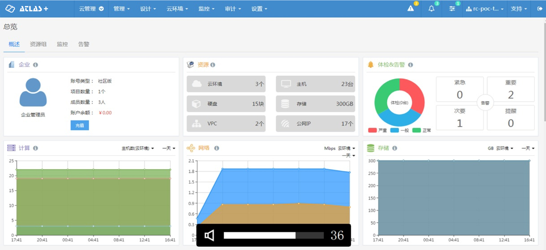 ATLAS+ 混合云管理平台(Cloud Management Platform,简称CMP)是中天云图研发,帮助企业构建云环境,实现异构环境统一管理、 自动化部署与运维、持续集成与交互的软件。ATLAS+ 可以让企业选用不同类型的设备、虚拟化技术及云供应商构建其按需交付的云服务系统。企业可以通过ATLAS+混合云管理平台,实现IT自服务管理,动态调度资源,异构资源的统一管理、统一监控,自动化运维和应用自动化编排、部署。从而最大限度提高企业IT工作效率和资源利用率,构建弹性计算平台,保障业务系统的可用性。
